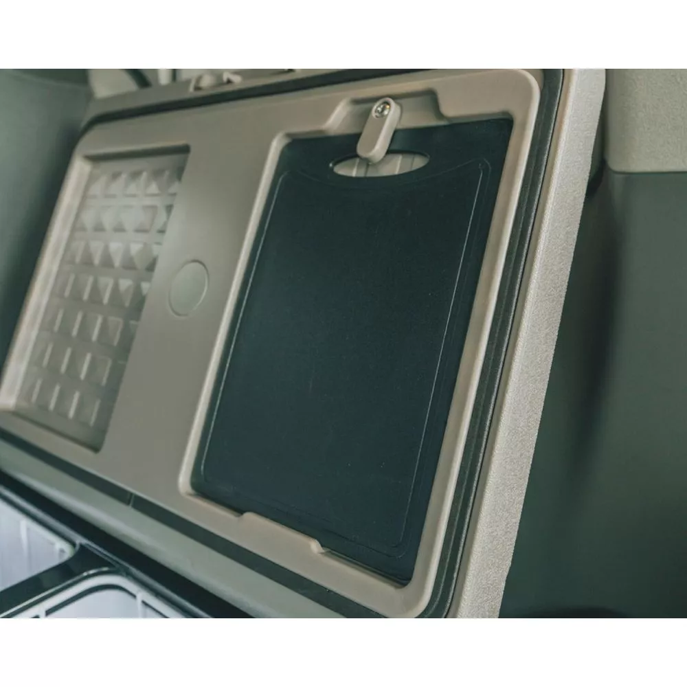 Weitere Features sind ein im Deckel befindliches Schneidebrett und ein seitlich angebrachter Flaschenöffner. Die Kühlbox kann an Auto- und Standardsteckdosen angeschlossen werden. Für netzunabhängiges Camping sorgt die optional erhältliche, wiederaufladbare Batterie.